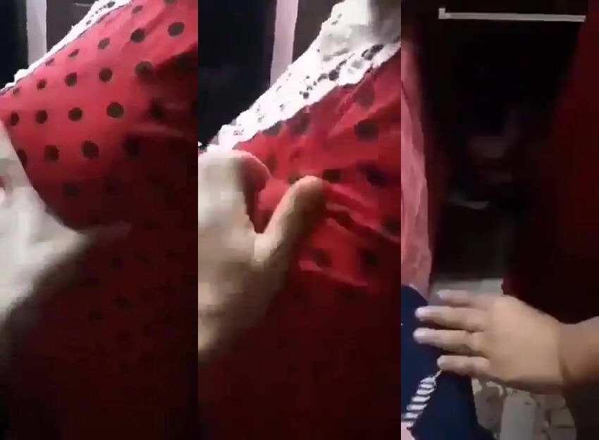 مقطع سكس تحرش منزلي علق هايج بيمسك في بزاز امه والقحبة امه بتمسك في زبره وهو واقف علي بزازها.